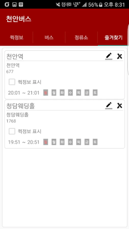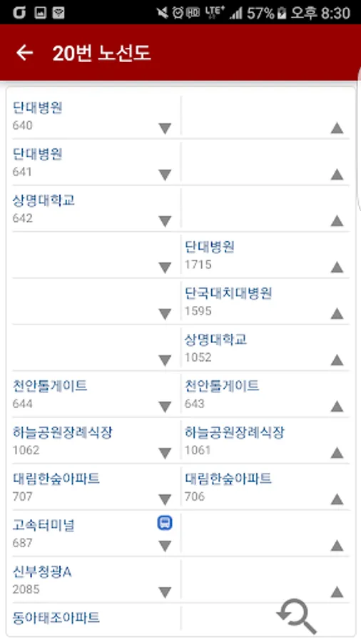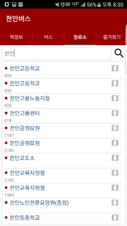 Routes, bus stops and other information about the system and the interface is so Cheonan App (data) without updating the information.