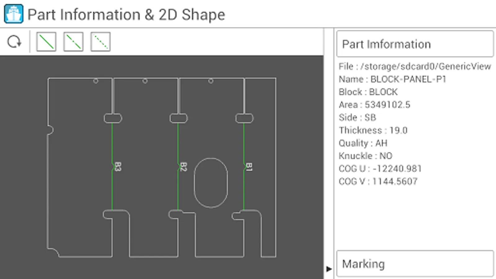 - Outer contour of shape/Hole/Marking is displayed as 2D image