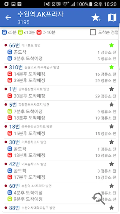 (Depending on the Gyeonggi-do bus information system, the bus arrival time may not be accurate.)