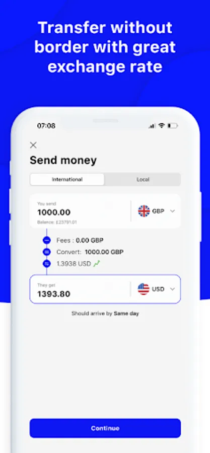 The Nexdi app is simple, fast, and secure, allowing you to send money to over 130+ countries in 38 major currencies around the world. You can send, receive, and convert with live exchange rate at any time, all from one account.