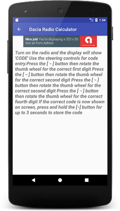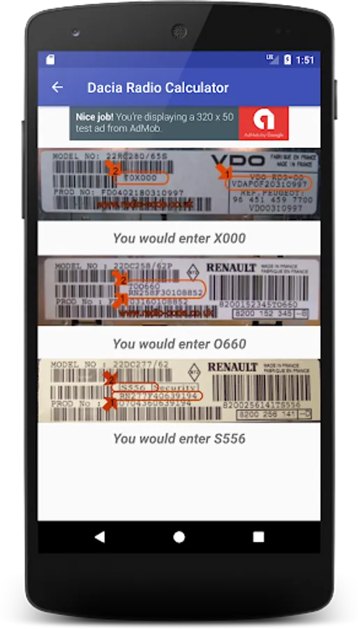 This application can provide you with the original manufacturer's security code required to activate your Renault car radio or CD player following a loss of power.