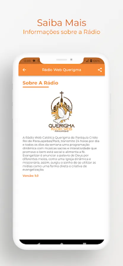 The Querigma Catholic Web Radio of the Cristo Rei Parish of Parauapebas/Pará, broadcasts 24 hours a day and every day of the week a dynamic program with sacred music and interactivity that promotes social well-being and feeds the faith. To evangelize is to announce the word of God through different means, as a dynamic and missionary Church, thus, the dream of using the media as a direct and creative form of evangelization arose.