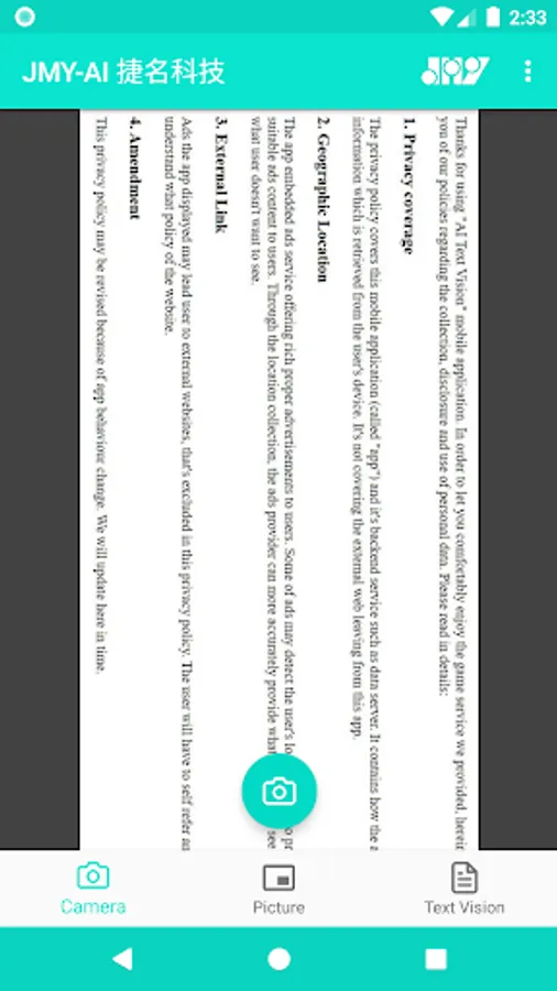 The AI Text Vision with great AI technology watches the literary paper and recognizes all words of content. And proprietary way to relayout words to sentences. It's convenient and useful to make your document electronic.