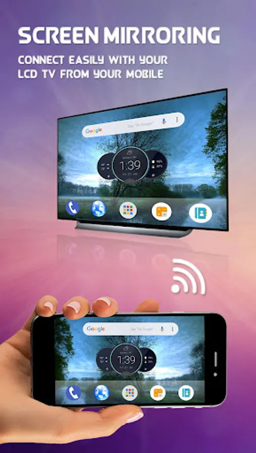 Screen Mirroring app mirrors entire mobile screen to your smart TV without any lag or buffering so you can Play Videos, Music and Photos very easily from your mobile. Sharing your screen with TV is very easy with Screen Mirroring with All TV app. Screen Mirroring - Screen Casting Phone to TV app provides you a secure connection between your mobile and TV to protect your data, files and applications.