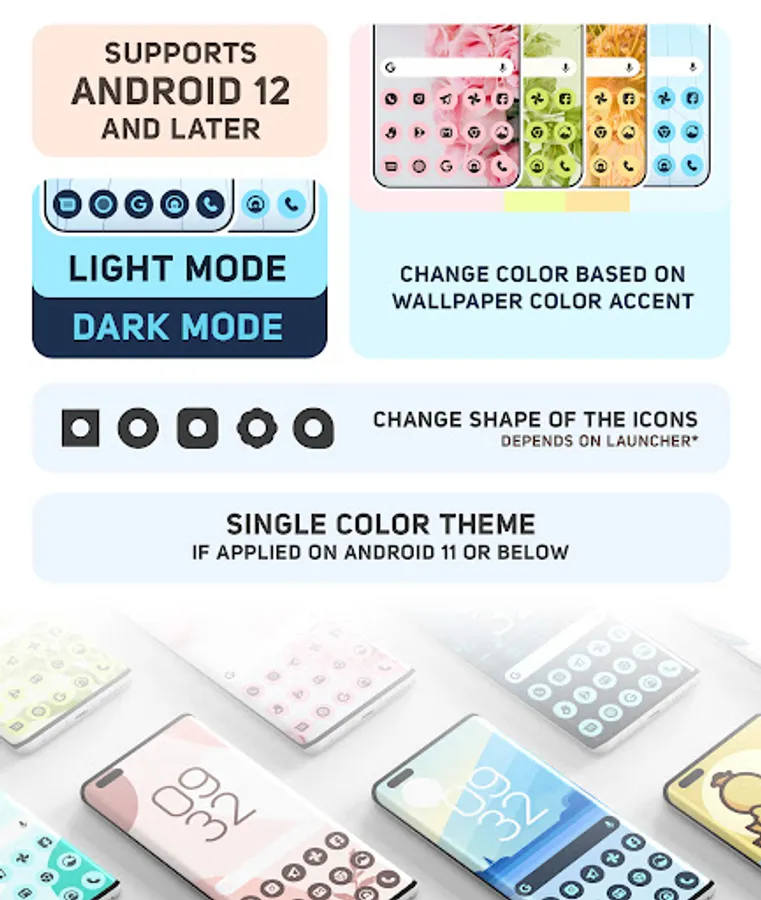 • If you want a version colors full icons with stock colors. that doesn't change colors with wallpapers, please check out my other icon packs.