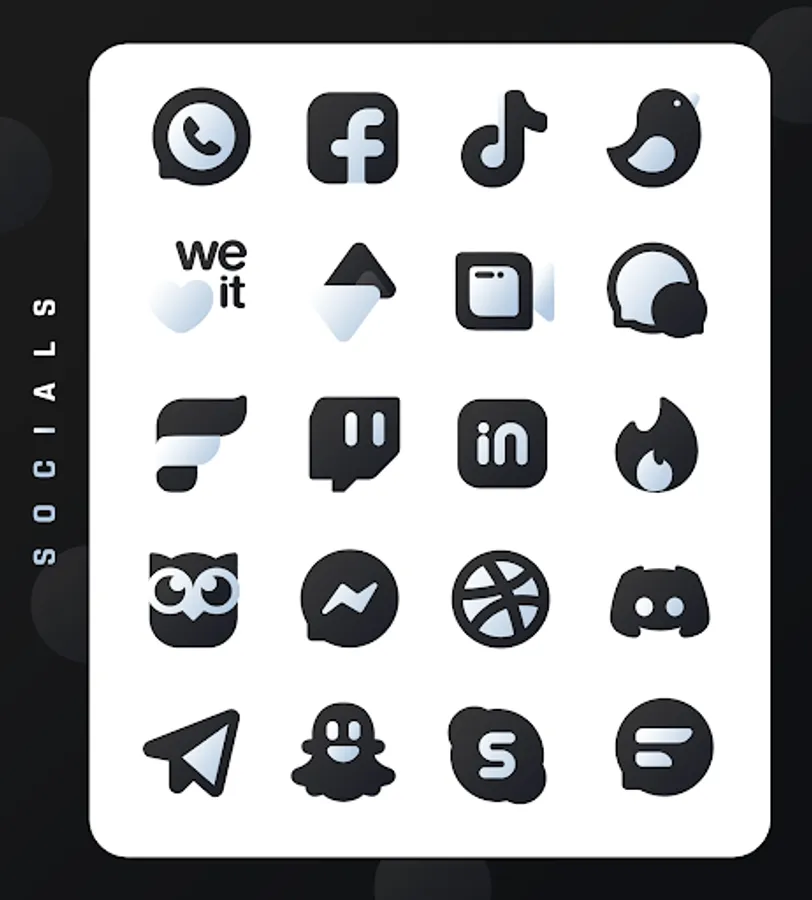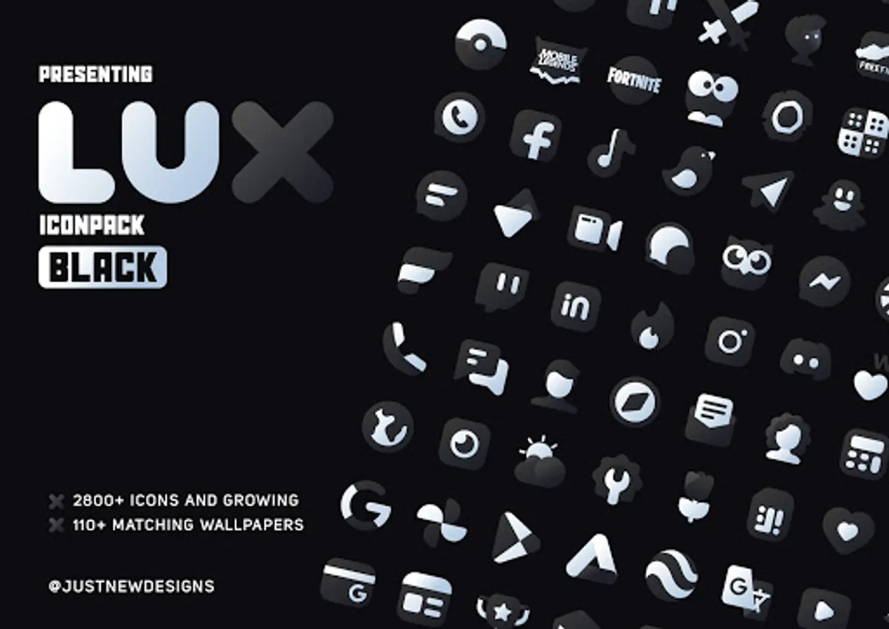The Lux Black Icon Pack is a fresh and innovative addition to the LuX IconPack series. With its unique Shape style, the icons offer a stunningly different look that is sure to captivate any user. This pack includes over 3000+ icons and a variety of high-quality wallpapers to complement the look.