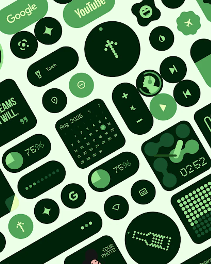 Built on Google’s Material 3 expressive design guideline, each widget features modern shapes, bold typography, and dynamic theming that matches your wallpaper and system colors automatically.