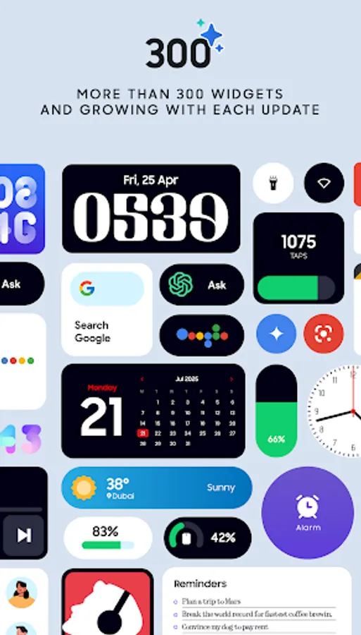 We’ve already got 300+ awesome widgets in the app, and we’re aiming to hit 350+ by the end of this year! No rush though—we believe in quality over quantity. That’s why we’re taking the time to design only the most useful and creative widgets. Stick with One UI Widgets for some seriously good updates.