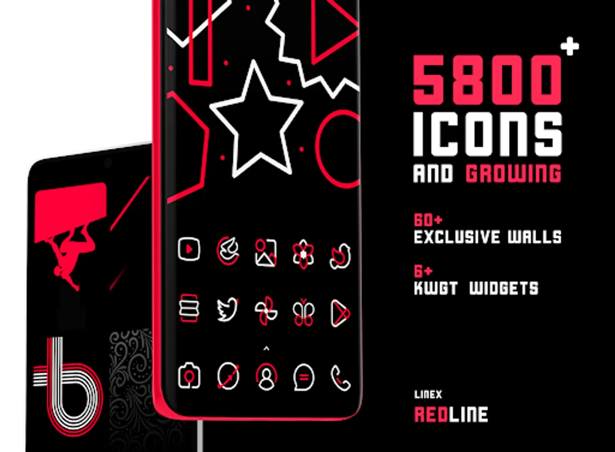 RedLine Icon Pack has a unique Line style from up-close, the icons look like they're really unique and out of the box , which makes for a stunningly-different look in the digital age. There are over 5600+ icons as well as a multitude of high-quality wallpapers to complement the look with Line icons.
