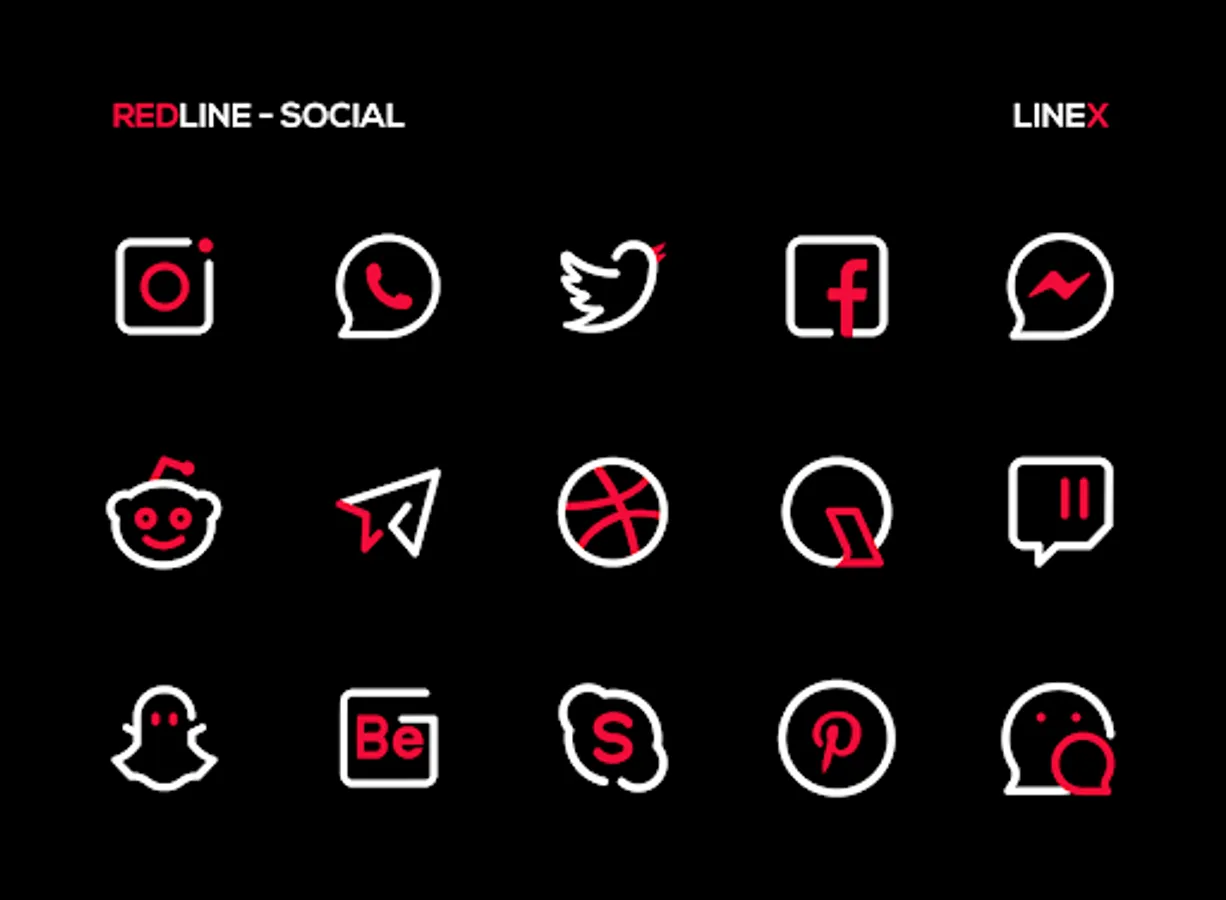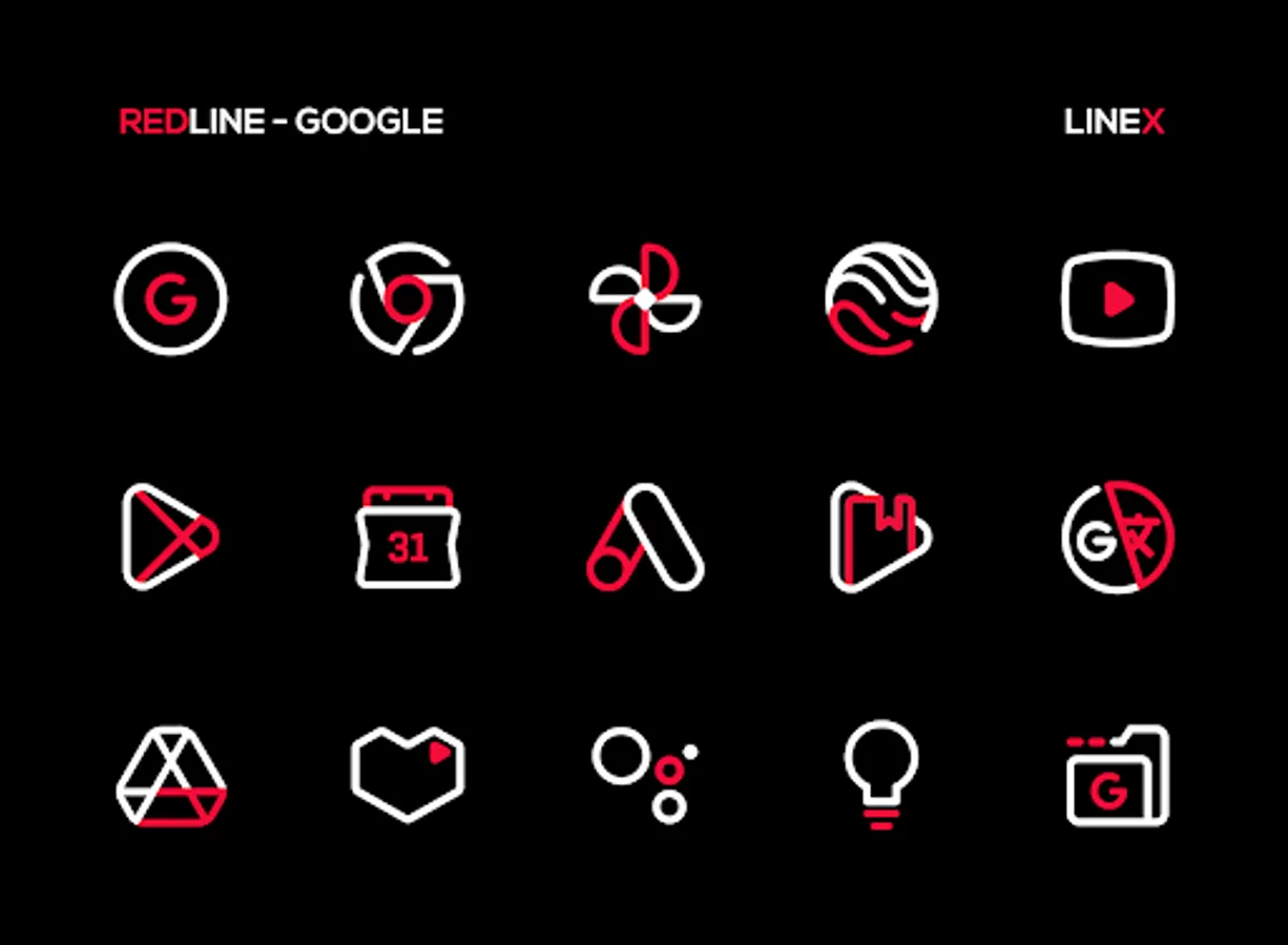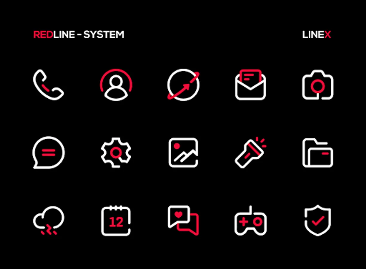 Red and White Version of LineX IconPack and YellowLine Iconpack, It's one of the freshest icon packs you could think of.