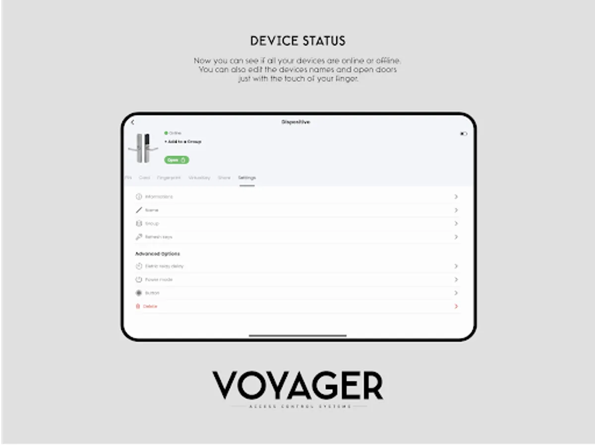 The JNF VOYAGER app turns your smartphone into your entry key. Secure and easy to install, VOYAGER access control provides a fully wireless networked solution with different solutions for every application in rentals, hotels and even private homes. All functions are available in close proximity to the lock, anywhere, even when the user is not close to the lock.