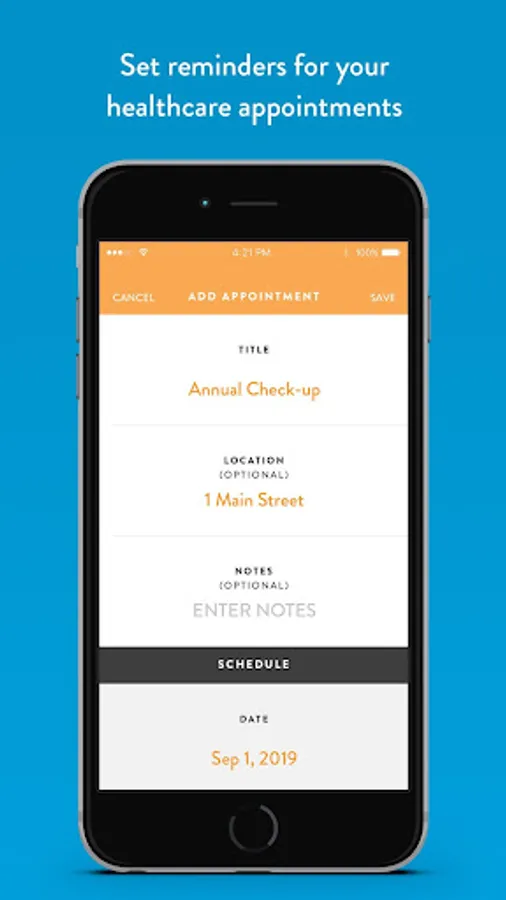 • Delivers medication, medication refill, and appointment reminders that you set up to help you stay on track in managing your health