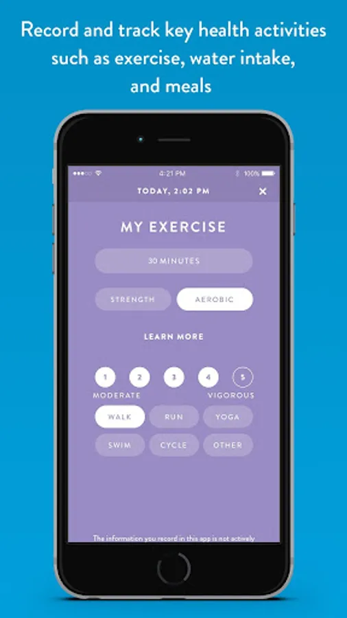 • Records information you enter such as blood pressure, exercise, mood, etc. ... and tracks those reported measurements to help you see your trends