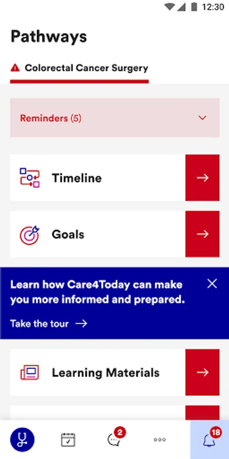 C4T is an application to help prepare patients with an hospital appointment so they are well informed. In the app they find all the info they need about their pathway (things like timeline, learning materials, FAQs...) as well they can see their appointments and conversations. This all, so their hospital stay and pathway will be as smooth as possible.