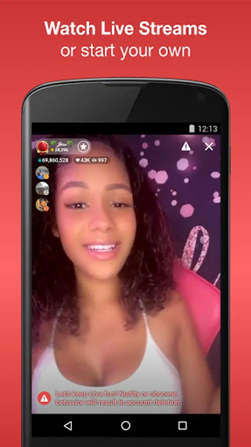 • NEW! Watch Live streams from people nearby or around the world, or start your own and earn real money!