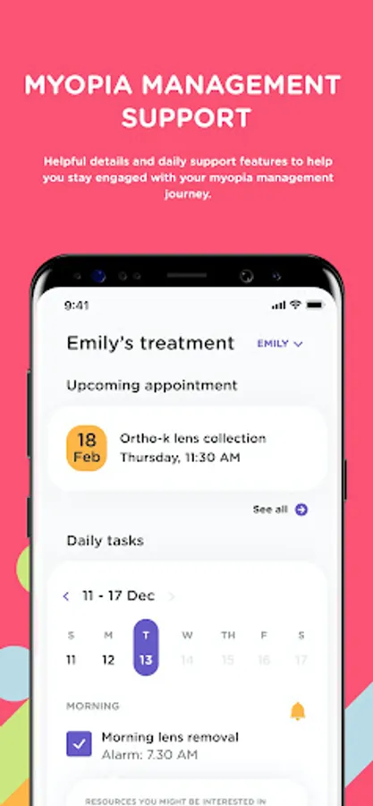 Treatment support information and daily notification features to help you stay engaged on your myopia management journey
