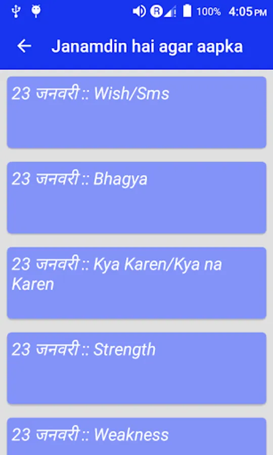 what your birth date tells you contain in this app ,this app contain calendar wise date with their data started from 1-jan-17 to 31-dec 2017.