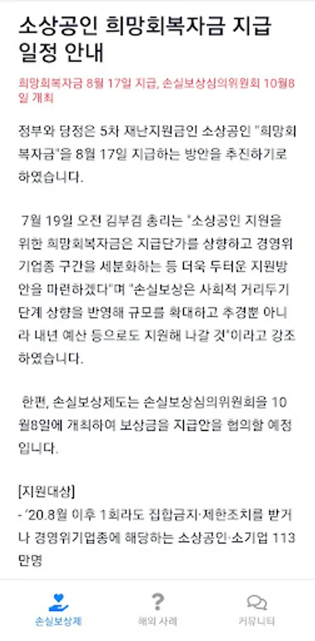 It is a guide application for the complete loss compensation system for business normalization of small business owners. We will introduce how to apply, scope of payment, and frequently asked questions.