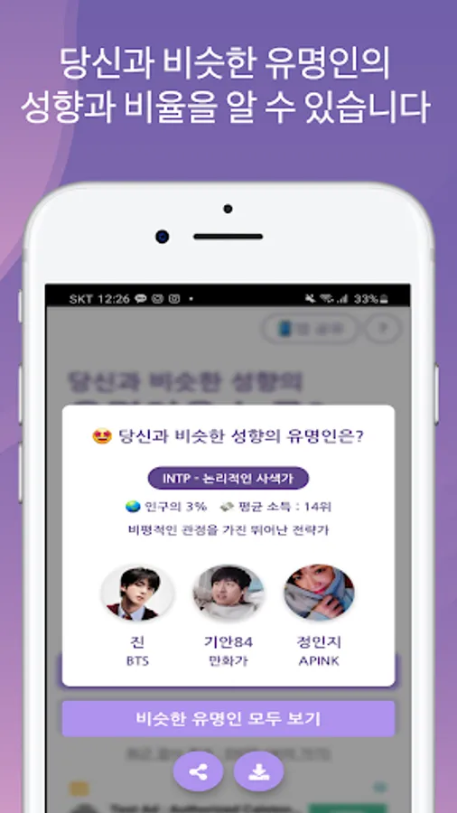 '16personalities free personality test-personality test-personality type test Celebrity, affinity, dating type' is a service that finds similar celebrities based on the results of 16 popular personality tests. You can also conduct a free propensity test through an external link within the app.