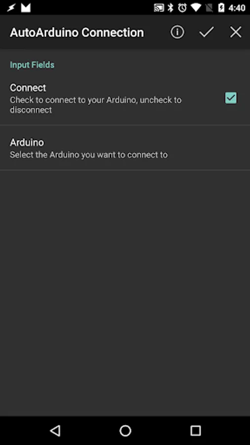 AutoArduino connects to your Arduino through USB OTG, Bluetooth or Ethernet.