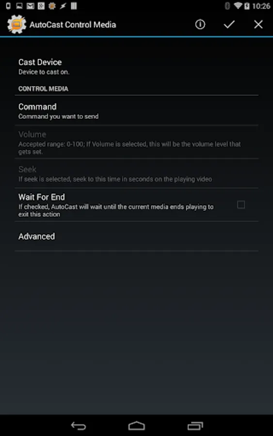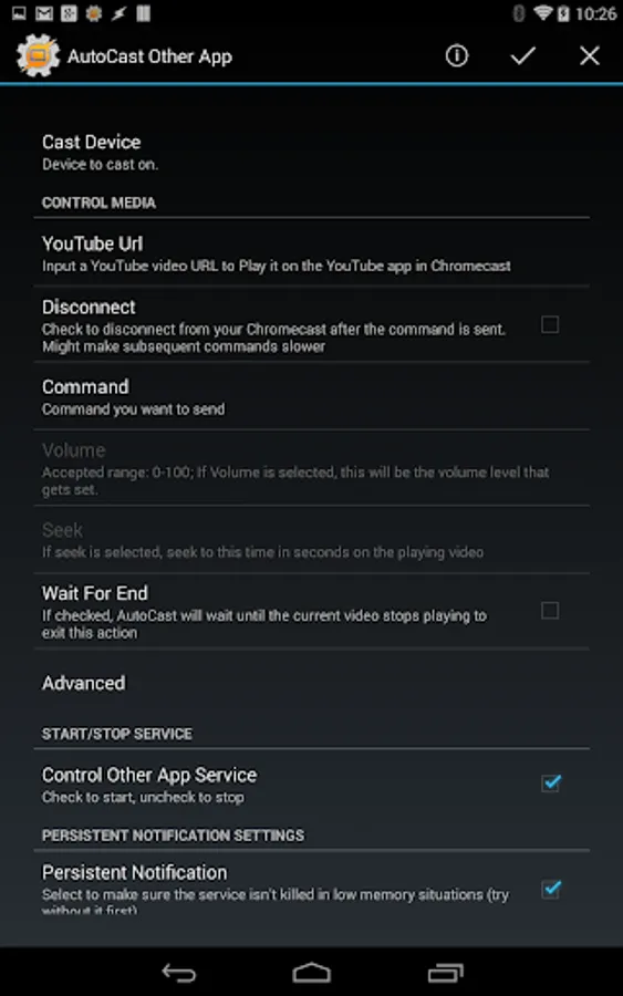 AutoCast is a Tasker plugin that gives you full control over your Chromecast. It not only enables you to cast images, audio and video from Tasker, but you can also cast and control many other local or web contents, like YouTube videos and playlists, notifications, voice, and web pages! You can also take over other apps that are being cast and control their playback!