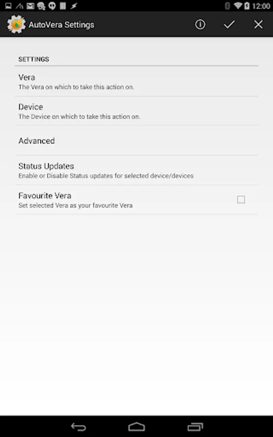 AutoVera is a Tasker plugin that allows you to fully control your home in a very easy, yet powerful way.