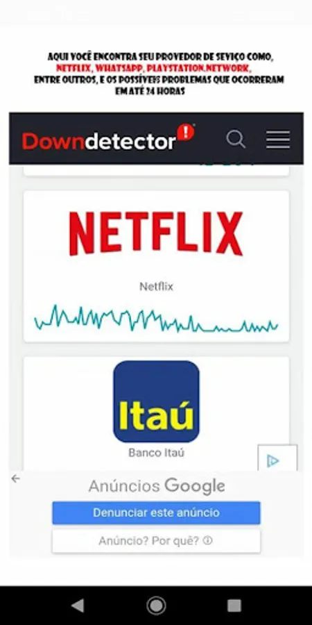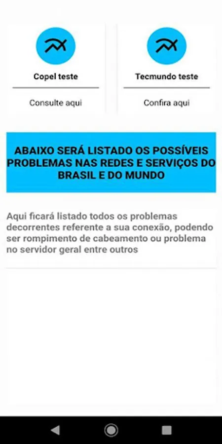Here you can measure the speed of your internet, and stay on top of possible causes. You will be able to measure your speed with two different meters so you can have better accuracy, you will also be able to check service providers like NETFLIX, PLAYSTATION, FACEBOOK among others, if they are working correctly.