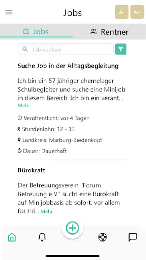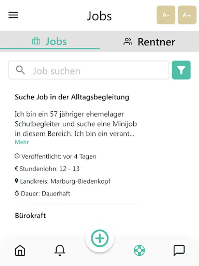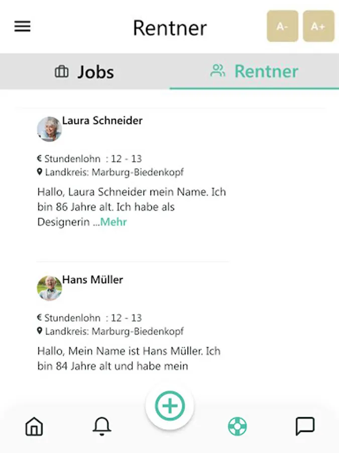 The pensioner app is a platform aimed at employers, private individuals, private households, pensioners and the elderly. Here you can offer a job or look for work and chat with all providers.