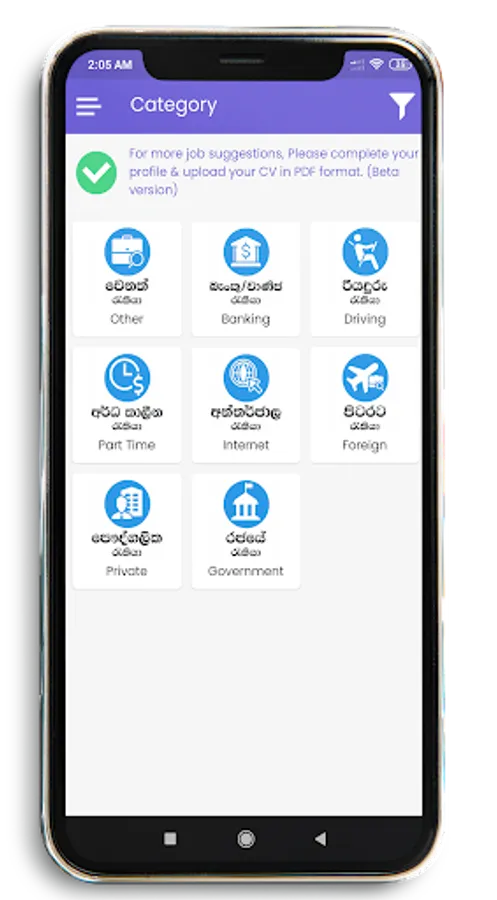 ✔ ඔබගේ විස්තර වලට (profile) ගැළපෙන රැකියා යෝජනා කිරීම.