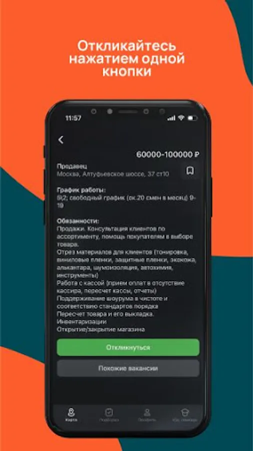 The application helps to track current vacancies in the desired area of your city. Get detailed information about the selected position and respond.