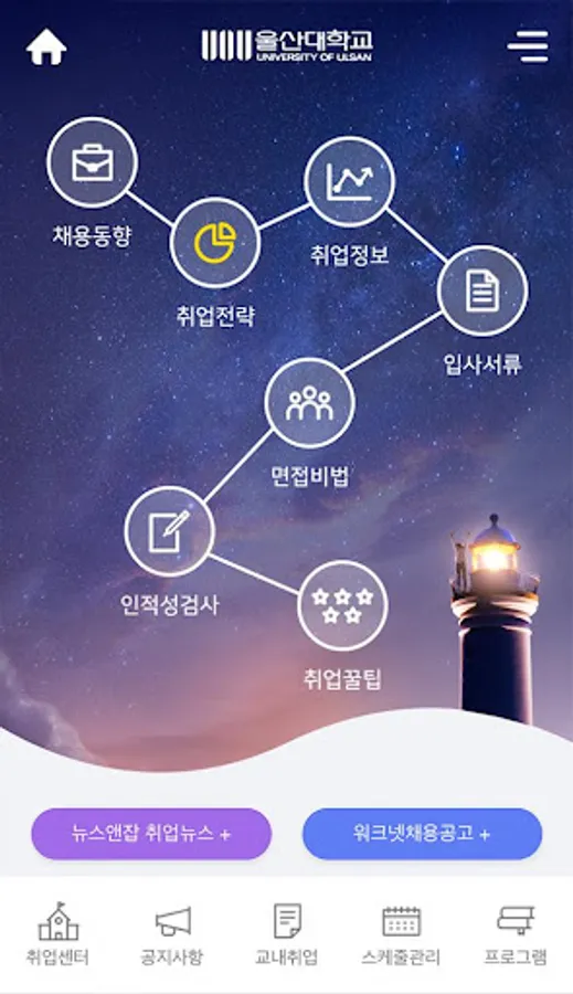 This application is designed to provide useful information and ease of use by providing various employment information to mobile students for Ulsan University students. It provides the following contents.