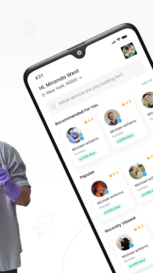 If you're an employer seeking talent to fill open positions within your home or organization, conveniently use our search feature to check out an extensive list of experienced on-demand freelancers waiting to get hired. You can visit their profile, learn more about their education and work experience, and review their star rating directly through the app. Finding dependable workers to get the job done is made easy with Jobbs.