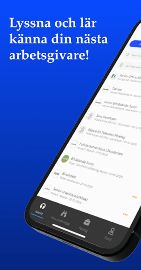 Tack vare Jobcast kan du nu konsumera jobbannonser och djupdyka i företags historia, kultur, medarbetare och mycket annat i ljud. Lite som en podcast för jobbannonser och employer branding helt enkelt! Lyssna i bilen, på gymmet eller när du rastar hunden, bara din fantasi sätter gränsen.