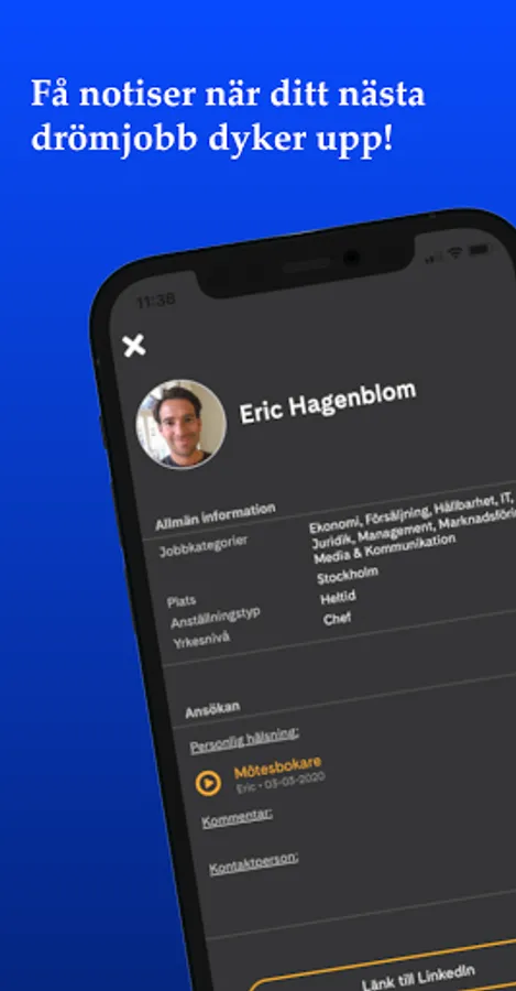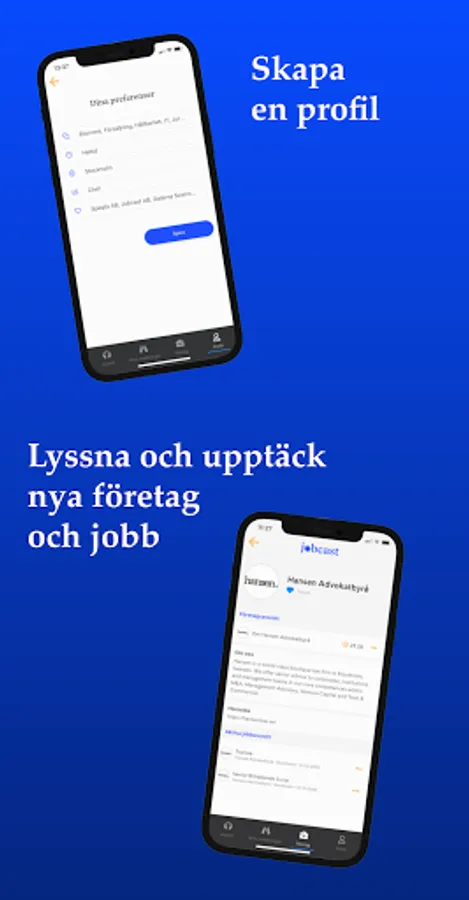 • Få notiser när jobb eller företag som passar dig dyker upp