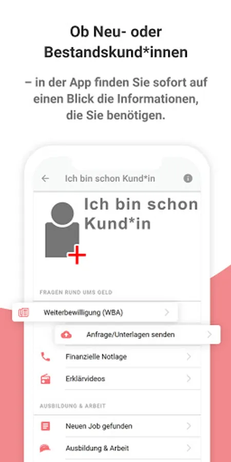 Send the documents via the app and check the status of the processing. If you have any questions, simply book an appointment with our experts directly via the app.