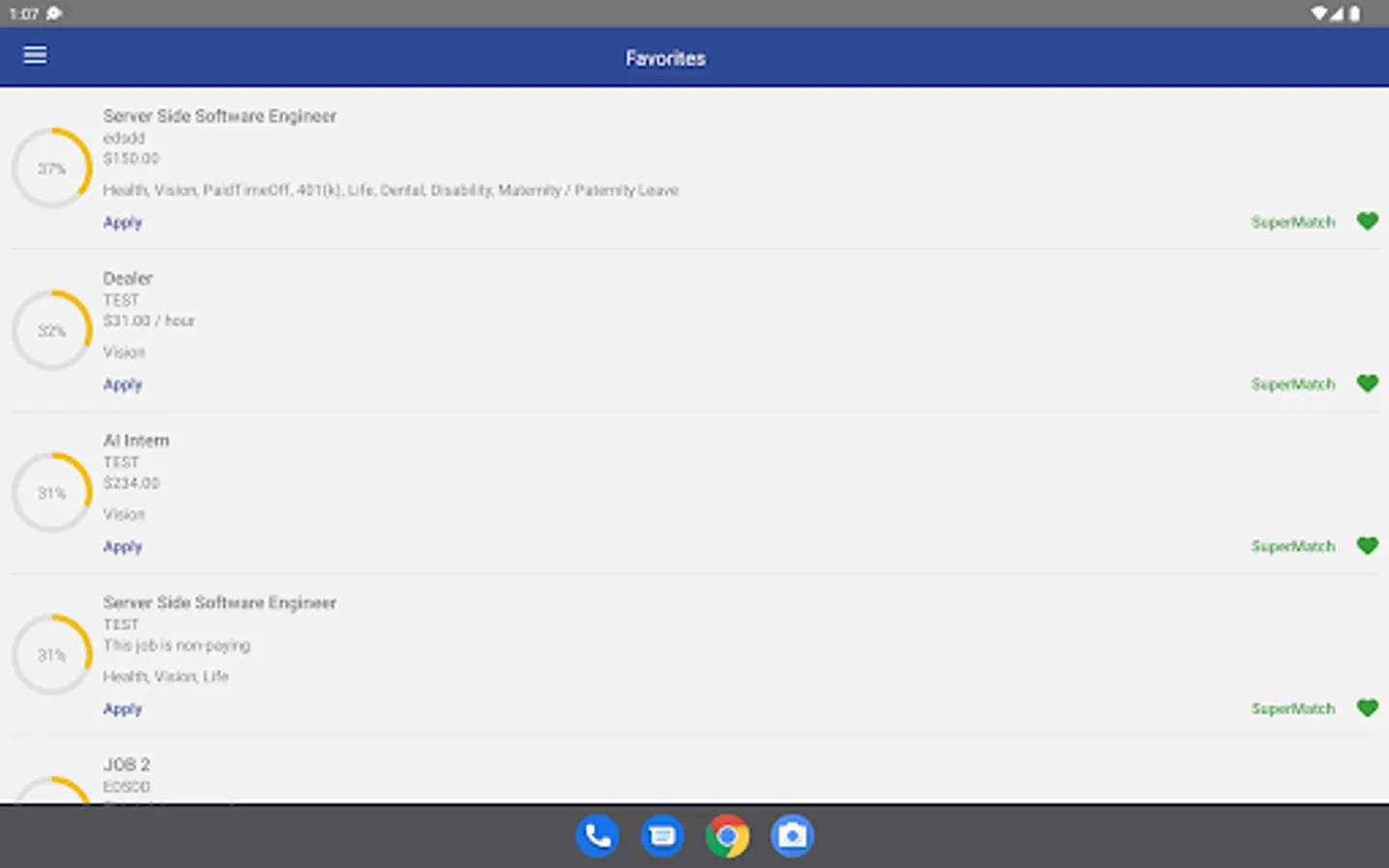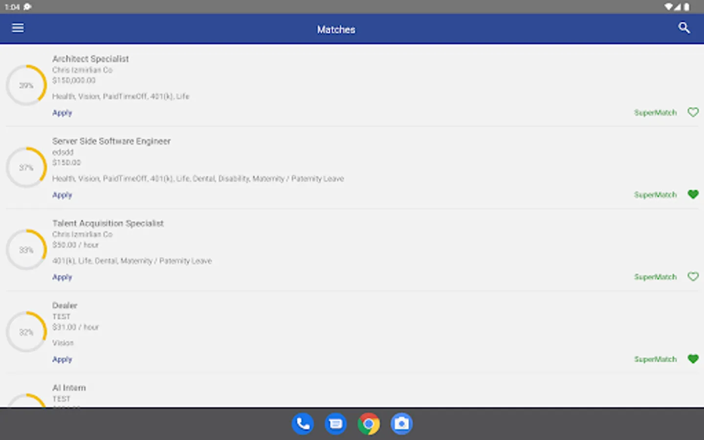 Based on the profiles and scores of both candidates and employers, JobCommander can optimize your ability to be matched with the position we believe is best suited for both parties. Alongside our algorithms, we can best determine which employers or candidates best fit your unique and specific job needs, roles filled, and optimal career choices. We may even find something unique about a career path that you may not have known yourself!
