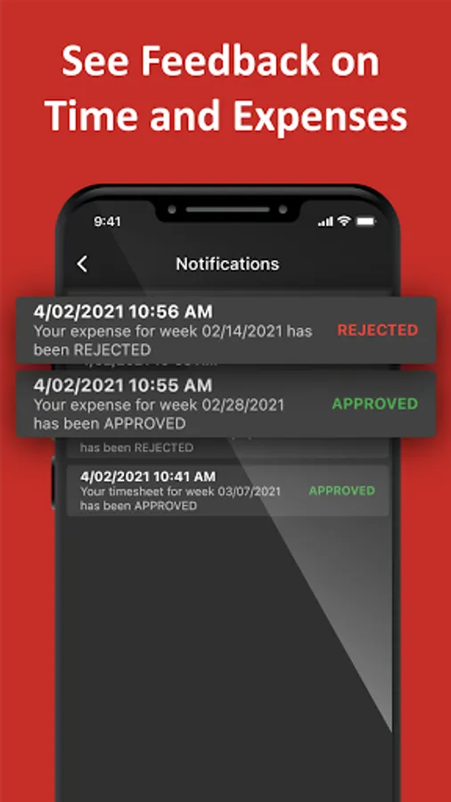 -Push notifications alert you the moment when a timesheet/expense gets approved or rejected