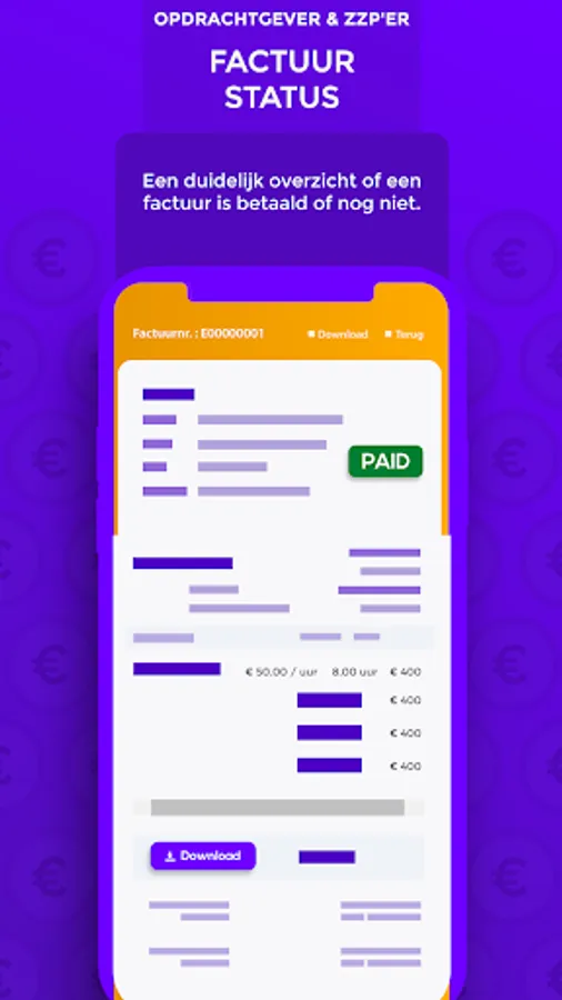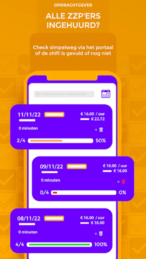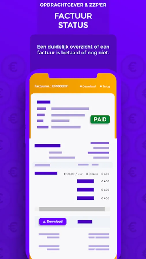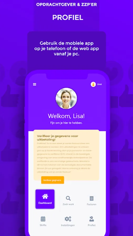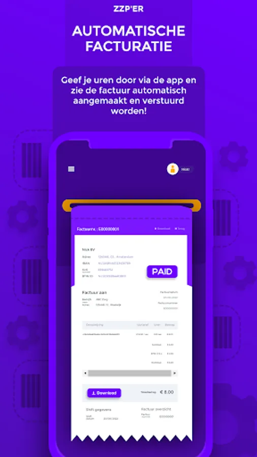 Vul je uren in na een shift gewerkt te hebben en zie de factuur automatisch gegenereerd en naar de opdrachtgever gestuurd worden!