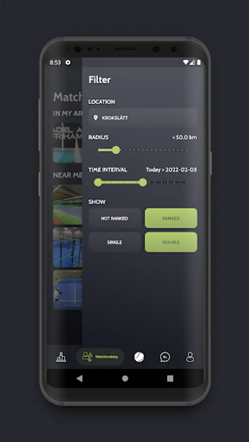 Padlr has several possible options for you to reach out to other players. Some of these features are matchmaking, chats and feeds. Players can tune their matchmaking and search for opponents with a certain level of skills, all to create as even and fun matches as possible.