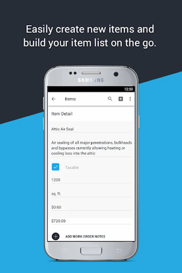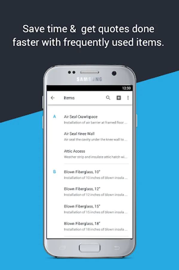 • Access to example item and material lists for handyman, carpentry, electrical, HVAC, insulation, plumbing, roofing and other industries