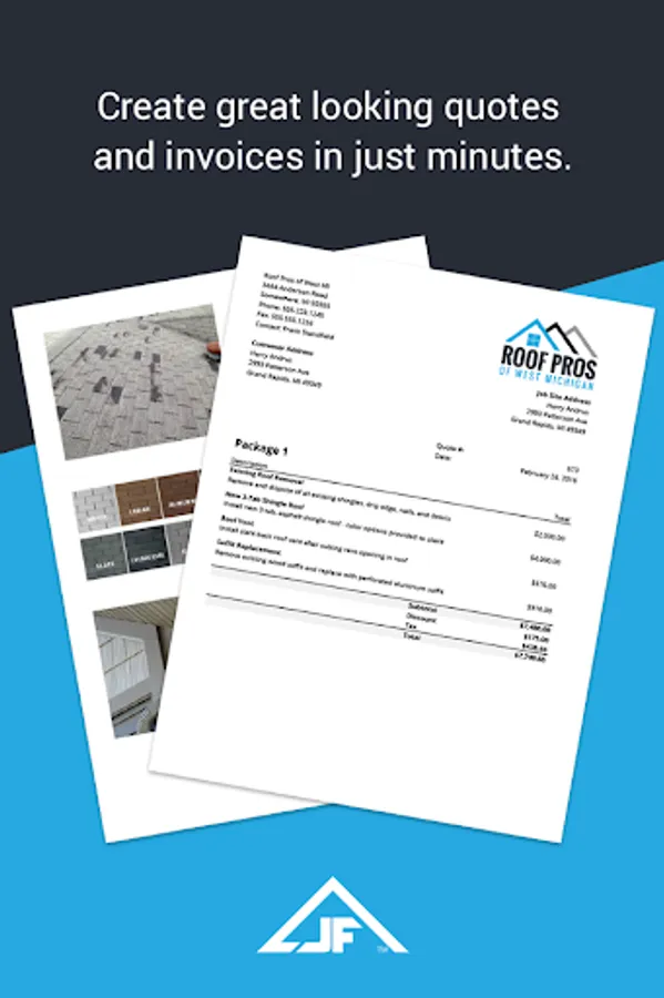 • Look Professional: Build trust with your clients and show them you are the perfect contractor for their projects. The JobFLEX invoice and estimate app lets you customize your logo in your invoice, add photos to your estimate, deliver your estimate faster and quickly provide an invoice to your customer on site or from anywhere.
