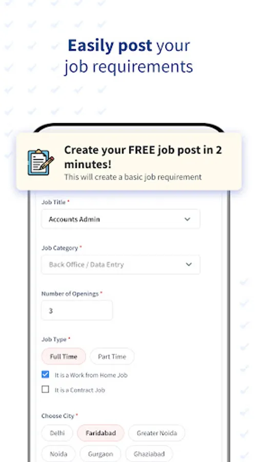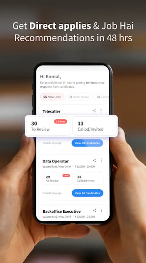 Download the Job Hai Recruiter app today and hire the right candidate for your office in Delhi, Noida, Greater Noida, Faridabad, Ghaziabad, Gurugram (Gurgaon), Hyderabad, Pune, Bangalore, Kolkata, Jaipur, Ahmedabad, Chennai, Mumbai, Patna, Indore, Chandigarh, Surat, Lucknow, Bhopal, Visakhapatnam (Vizag) and Kochi for free.