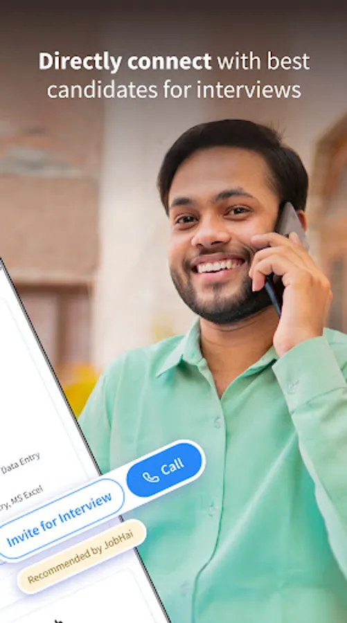 Post a job within seconds and get contacted by relevant, quality candidates from nearby areas in no time. Be it a job opening for a Customer Care, Telesales, Data Entry Operator, Back-office, Receptionist, Accountant, Teacher, Marketing, Sales, Business Development, Cashier and Recruiter-HR. Job Hai Recruiter will meet all your hiring or recruitment needs. Your job posting is shown to the most relevant candidates that fit your requirements. Within hours you will have candidates who are ready to give interviews and for immediate hiring. An easy way to post a job where you can mention your preferred candidate's location, education and relevant experience along with the flexibility to take walk-ins. Get candidate recommendations in no time and get in touch with them over the call or by dropping a free message. Job Hai has a rich database of both freshers & experienced/skilled candidates who are seriously looking for a job.