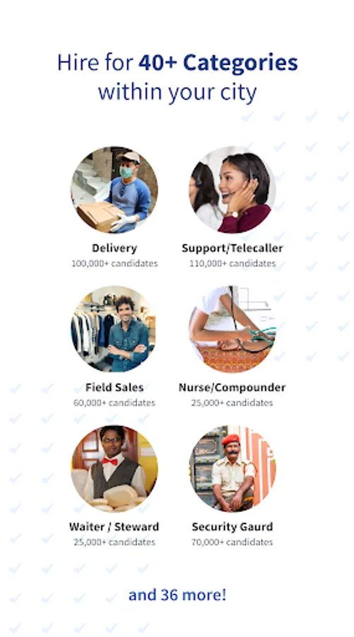 Hire candidates for Customer Care, Telesales, Data Entry Operator, Back-office, Receptionist, Accountant, Teacher, Marketing, Retail and Counter Sales, Sales, Field Sales, Business Development, Web/Graphic Designer, IT/Network/Hardware Engineer, Content Writer, Cashier, Recruiter/HR/Admin etc. categories.