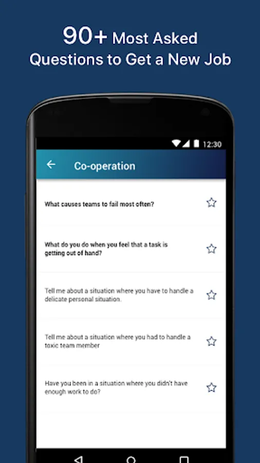 ● Frequently asked questions about strengths, weaknesses, leadership, personality, organisation, problem solving, goals, topics and fears, cooperation, management. The interview questions that the application contains are examples from my many years of practice, which have given people much trouble.