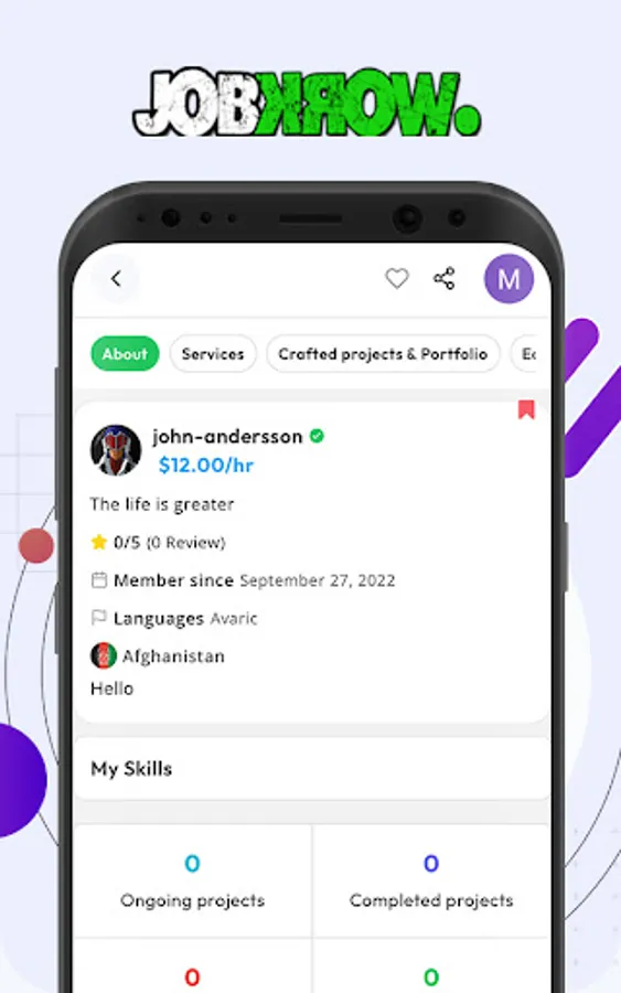 Your profile is your cover letter to anyone who wants to buy or hire your services, Jobkrow.com advises you to present a professional profile that includes a photograph or an avatar that identifies you, fill in all the fields that you think are important, such as, for example: work experiences, professional skills, price per working hours, etc.