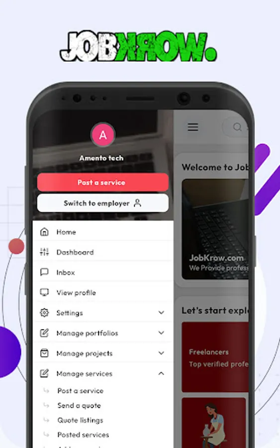 Are you a Freelancer or do you hire people to create paid tasks online? Jobkrow does that for you, create your account and become a potential online service seller or find qualified people to work in your business through projects or by hiring their services through the proposal form or by hiring the services that users post to through our platform in Web version or Mobile version.
