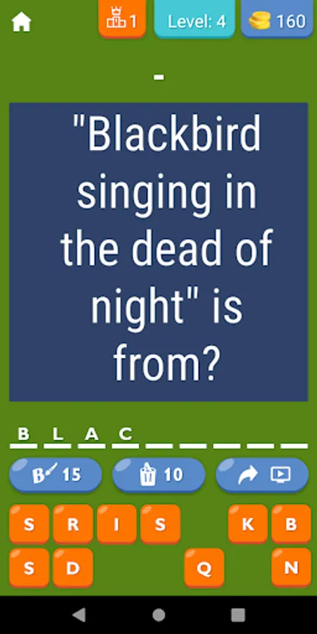 This app includes Beatles all songs. This is a simple Beatles quiz. Play now this Beatles trivia. This is one of the the Beatles games. This is fun Beatles wala game. So can you guess the Beatles song in 1 second. So can you guess the Beatles song. So can you guess the Beatles song in 2 seconds. This is simple guess the Beatles song game. This is guess the Beatles song with no hints game. So guess the Beatles song by lyrics. So can you guess the Beatles song from lyrics. Play now this guess the Beatles lyrics game. Play now and guess the Beatles song lyrics. This is simple guess the Beatles song quiz. So can you guess the Beatles song by the lyrics.