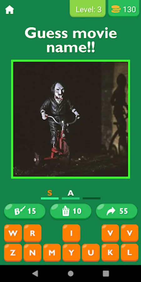 Welcome to the spine-chilling world of horror movies! In this game, your task is to identify the name of the horror movie based on the given picture. Each level presents you with a picture from a classic or recent horror movie, and you have to guess the name of the movie by typing it in. The game features hundreds of levels with varying degrees of difficulty, so you'll need a sharp eye and a good memory to complete them all. Some levels might feature iconic scenes from well-known horror movies, while others might have more subtle hints or references that only true horror aficionados will recognize. As you progress through the levels, you'll unlock achievements and earn points that you can use to get hints or skip difficult levels. You can also challenge your friends and other players from around the world to see who can guess the most horror movies correctly.