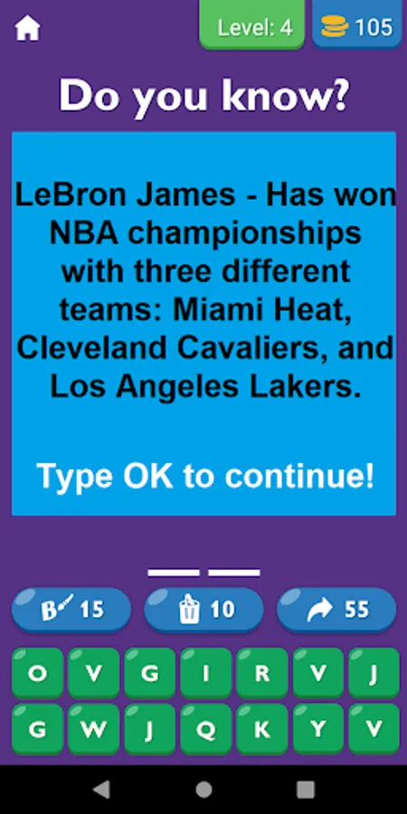 This app features a wide variety of NBA players from different eras and teams. Each level will display a image of an NBA player, and your job is to guess the name of the player. This app is perfect for NBA fans of all ages, whether you're a die-hard fan or just getting into the sport. You can play alone or challenge your friends to see who can guess the most players correctly.